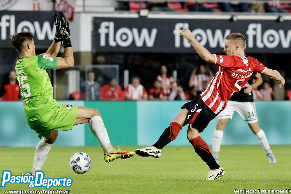 El 2-0 estuvo lejos de saciar a un Estudiantes que estaba decidido a liquidar el partido lo antes posible. Y casi lo logra con un estupendo tiro libre de Cetré que impactó en el ángulo. Tampoco pudo Ascacíbar con el arco a su merced en el rebote.