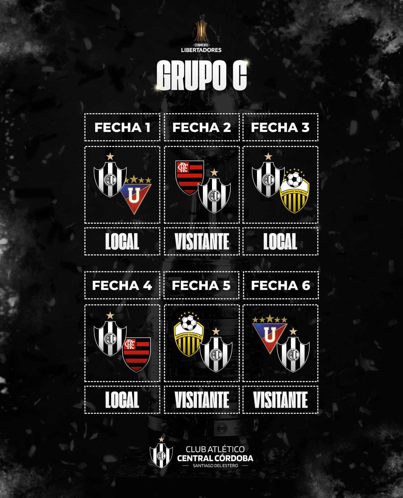 La CONMEBOL anunció el fixture y la agenda de la fase de grupos de la Copa Libertadores de América, en donde Central Córdoba representará a Santiago del Estero y la Argentina en su primera participación internacional.