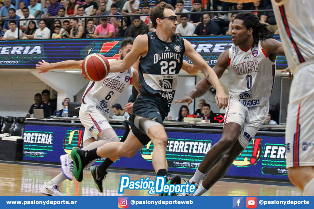 Primer cuarto a favor de Olímpico 23 a 19 con Defelippo (9) como principal vía de gol y un gran trabajo de Lockett en ambos canastos. Los de fueron encontrando fluidez con el correr de los minutos sin resistir la estructura con la rotación impuesta por Capelli. Quimsa encontró en los tiros largos de Romano la chance primaria anotar.