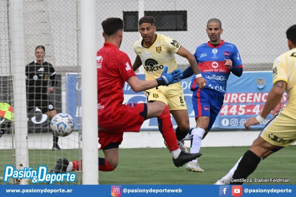En la primera llegada profunda de Madryn, a los 6’ Bruno Pérez recibió a metros del fondo de la cancha, encaró hacia el arco y remató al segundo palo para desnivelar el juego.