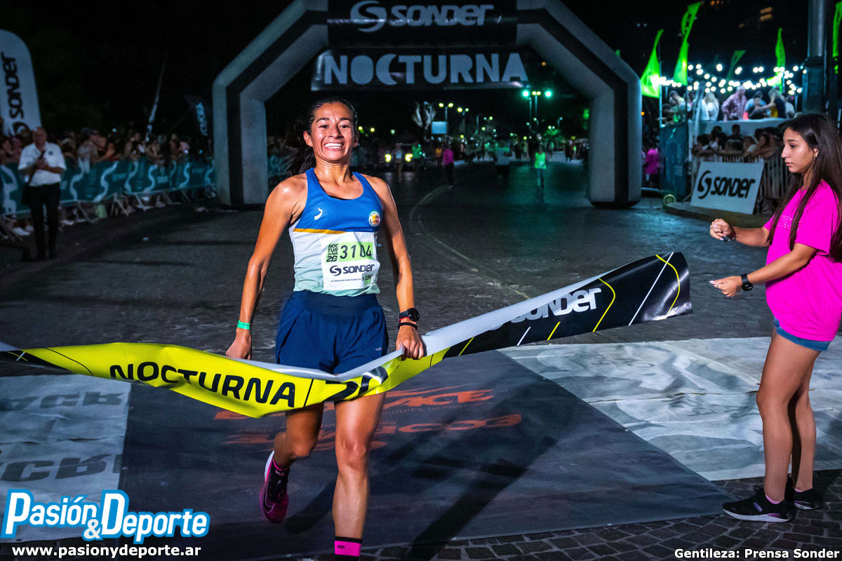 El chubutense Joaquín Arbe y la santiagueña Nélida Peñaflor se adjudicaron la edición número 20 de la Nocturna Sonder 2024, que se llevó a cabo este sábado 24 de febrero en Rosario, con largada y llegada frente al Monumento a la Bandera. En mujeres, la vencedora fue la friense, Nélida del Carmen Peñaflor, con un tiempo de 33 minutos 55 segundos, completando el podio, Mariana Borelli de Mar del Plata, y por otra santiagueña, Gissel Olivera. Más atrás quedaron la porteña Agustina Chertlen, la olavarriense Cecilia Fernández, María Aguilar de Junín, y la santafesina Patricia Ponce con un registro de 37 minutos 19 segundos, ocupando la séptima posición.