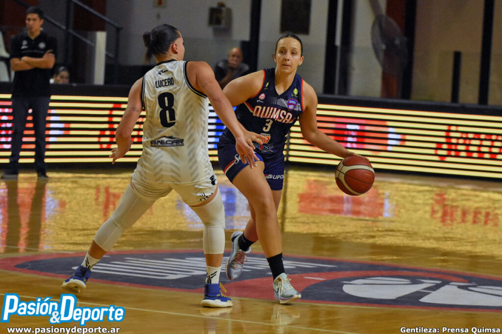 En el cierre, dos bombas de Serraiotto metió de nuevo en juego a la visita, pero Ledesma y Sienra sumaron del otro lado. Pérez y Lucero descontaron, pero 6 tantos seguidos de Centurión liquidaron la historia, triunfo de Quimsa por 59 a 51. Angelina Giacone la rompió con 15 puntos y Lorena Campos aportó 12. Del otro lado Stefania Lucero 25 tantos.
