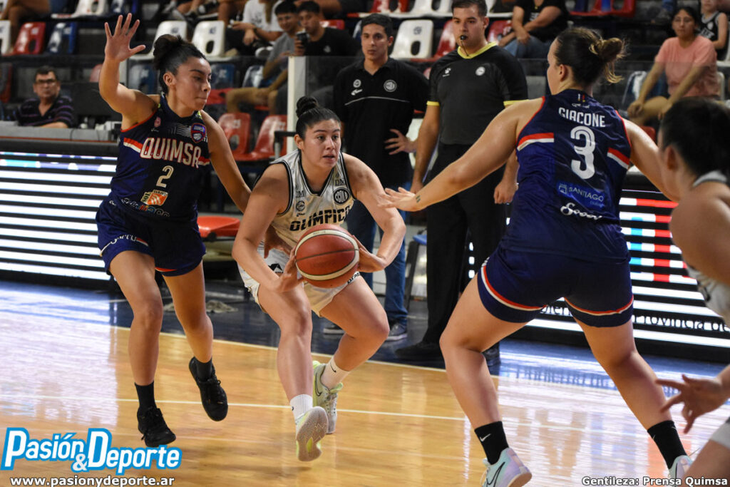 Tras el descanso un parcial de 8 a 0 para las dueñas de casa sacaron la máxima de 15 a su favor gracias a triples de Campos y Centurión. Olímpico buscó responder con los triples de Lucero, pero nuevamente Giacone sumó en Quimsa para liderarlo 44-34 a falta de diez minutos.