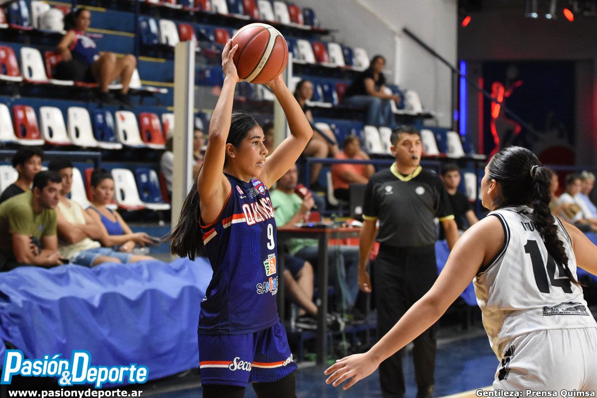 En el cierre, dos bombas de Serraiotto metió de nuevo en juego a la visita, pero Ledesma y Sienra sumaron del otro lado. Pérez y Lucero descontaron, pero 6 tantos seguidos de Centurión liquidaron la historia, triunfo de Quimsa por 59 a 51. Angelina Giacone la rompió con 15 puntos y Lorena Campos aportó 12. Del otro lado Stefania Lucero 25 tantos.