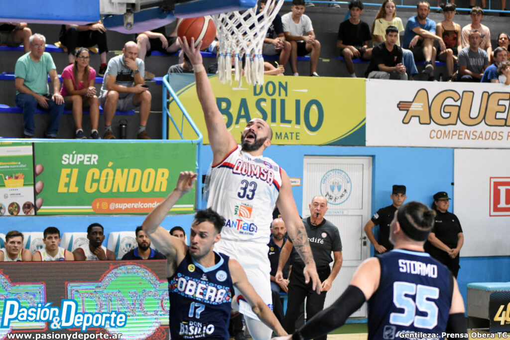 Oberá Tenis Club (Misiones) logró una buena victoria ante la Asociación Atlética Quimsa, por 71 a 56, por una nueva fecha de la Fase Regular de la Liga Nacional de Basquetbol. Con una gran tarea colectiva, el Celeste ganó con una buena labor de Agustín Barreiro con 19 puntos y 13 rebotes, muy bien acompañado por José Ascanio con 13 puntos, 8 rebotes y Enzo Filippetti con 12 puntos y 11 rebotes.