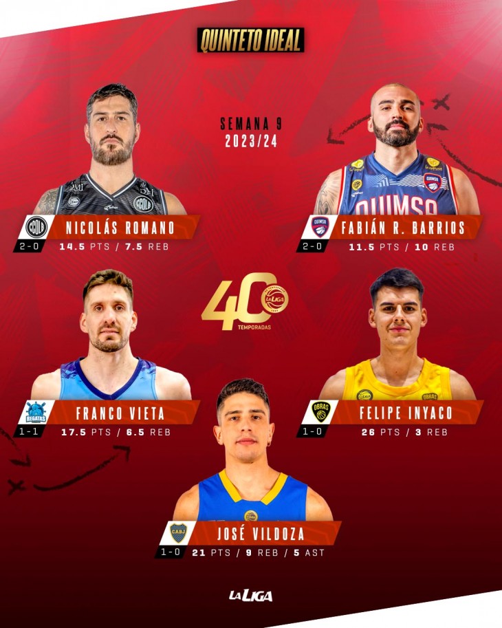Nicolás Romero – Olímpico (2-0) – 14.5 puntos, 7.5 rebotes y 20.5 de valoración.